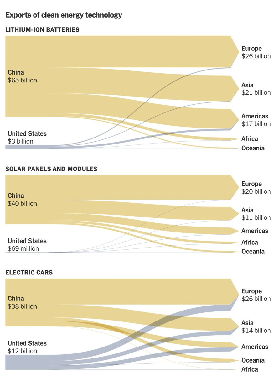 China's clean energy transformation extends far beyond its borders, fundamentally reshaping global decarbonization possibilities. The country's clean energy exports totaled $143 billion in 2024 across lithium-ion batteries, solar panels, and electric vehicles — approximately 10 times higher than comparable exports from the United States.