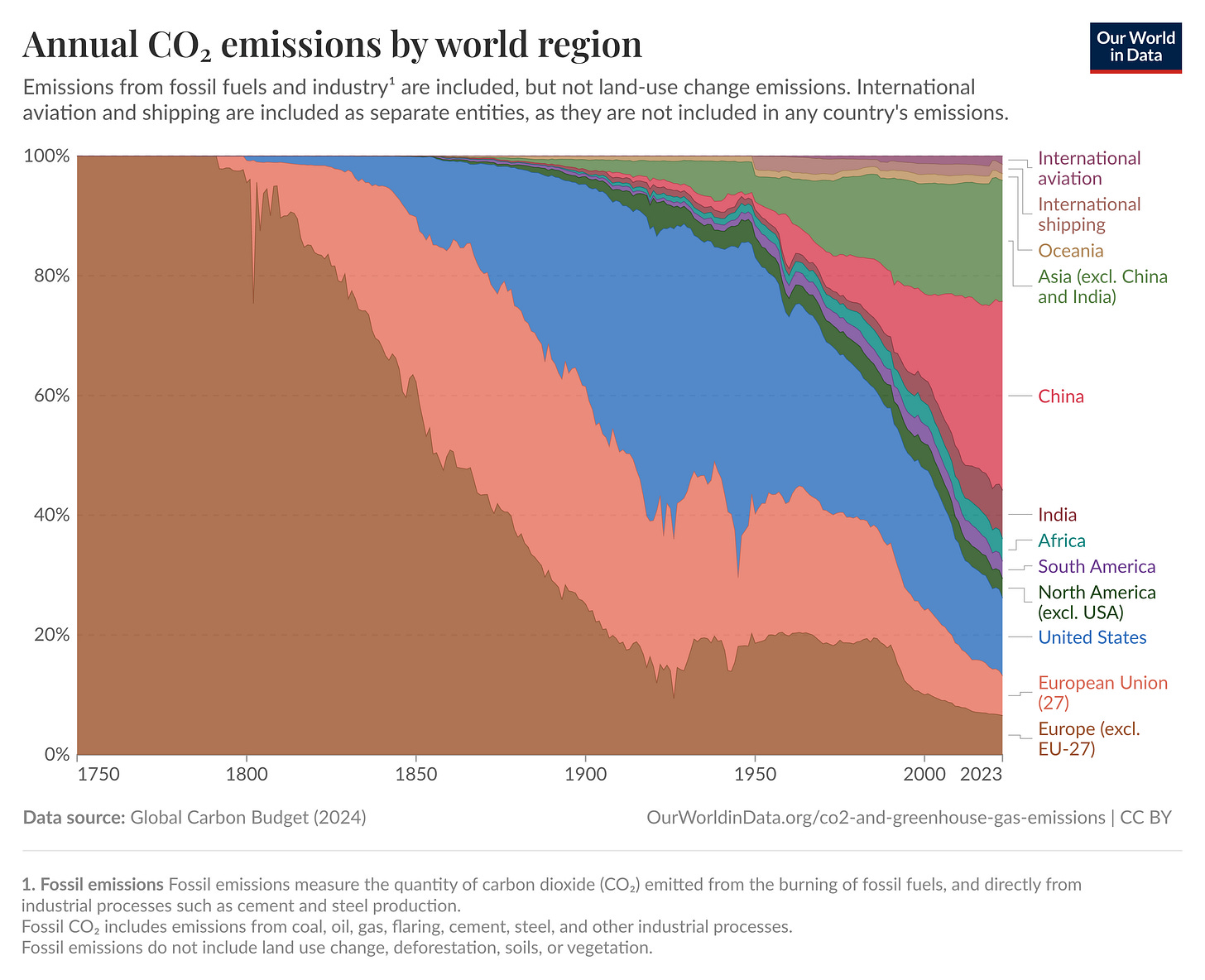 This historical analysis highlights an important point: blaming China for climate breakdown fundamentally misses the mark. The climate crisis was created primarily by the United States and Europe over the past two centuries. China's emissions are a relatively recent phenomenon.